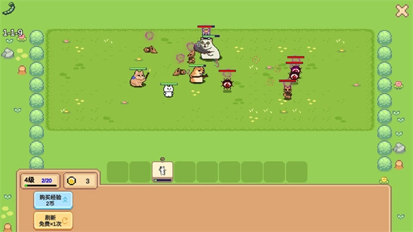 《Meme小战争》是up主自制的自走棋竞技作品。玩家需组建专属的猫meme小队,在关卡中巧妙排兵布阵,随时开启闯关挑战。若能成功击败所有怪物,即可领取金币,进而召唤更强力的猫咪英雄。