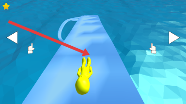 2、于蜿蜒曲折的水上滑道里滑行,借助左右方向按钮操控角色的滑行方向,始终维持在滑道之内,防止落入水中。