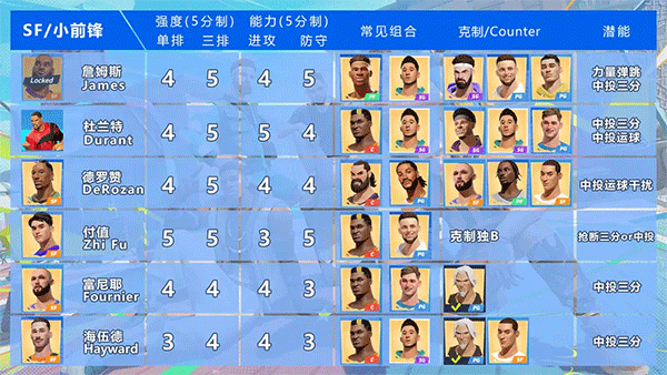小前锋位置的球员操作难度处于适中水平,比较适合偏爱中距离投篮或是通过突破来得分的玩家优先选择,不过该位置对玩家观察内线空位以及把握进攻时机的能力要求相对较高。