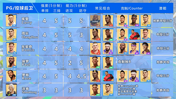 控卫球员具备出色的远程得分能力与顶尖的传运球技巧,无论是持球推进还是传球组织都很难被对手抢断,堪称团队进攻端的核心指挥官。3、选择建议: