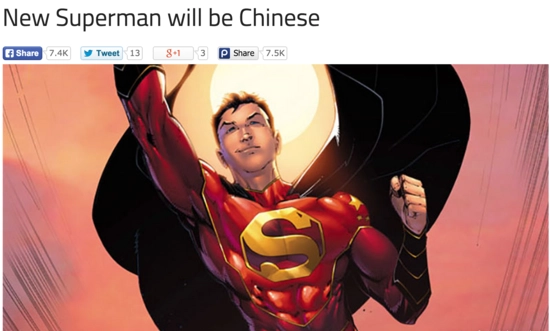前日,超人的“老家”DC宣布,今年7月将推出全新的超人系列漫画。这次,来自上海的孔克南(Kenan Kong)将成为新任超人……没错,这是超人系列有史以来第一次把故事背景设定在中国。不少外媒都打出了“新超人是中国人!”的惊讶标题,哎……说真的,这有什么好大惊小怪的?DC和漫威早就对中国市场这块“肥肉”虎视眈眈了好吗?