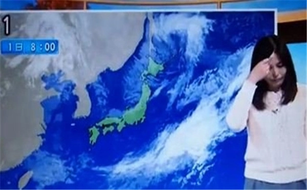2015年12月,日本放送协会(NHK)山形放送局的天气预报女主播冈田美晴(暂译)在播报天气新闻时突然落泪,她在播报台擦拭眼泪的样子被观众看到。就在网友们纷纷猜测其哭泣原因之际,她于2日请假未出现在主播台。据日本《每日体育》3月23日报道,她将在本月25日的节目播出后正式辞职,而实际上是被NHK开除了。