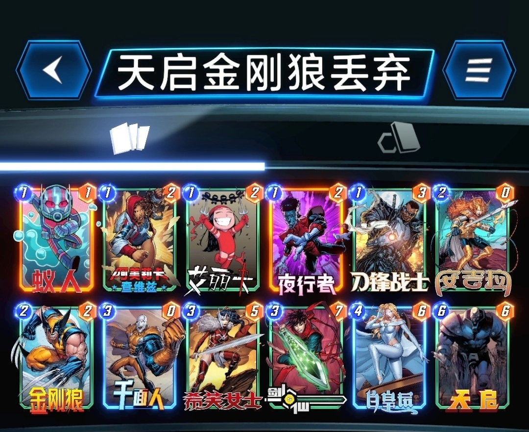 漫威终极逆转,携漫威宇宙全体英雄阵容震撼亮相。游戏中,你能从众多超级英雄与反派里精心挑选卡牌,打造独一无二的梦幻阵容,凭借智慧与策略,于变幻莫测的战场实现终极逆转。接下来,为大家带来由小编整理的《漫威终极逆转》天启金刚狼丢弃卡组攻略,各位不妨参考一番!