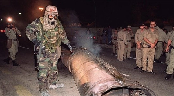 海湾战争期间,落在沙特首都利雅得的一枚飞毛腿导弹