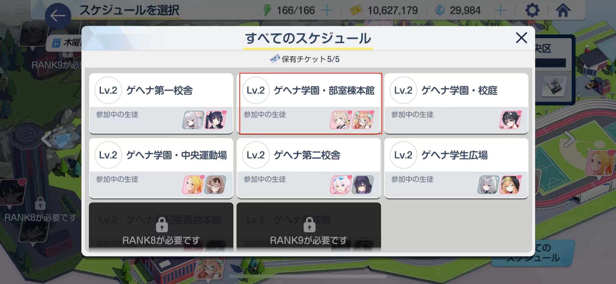 5、日程中点击2次已拥有的格黑娜学园学生。
