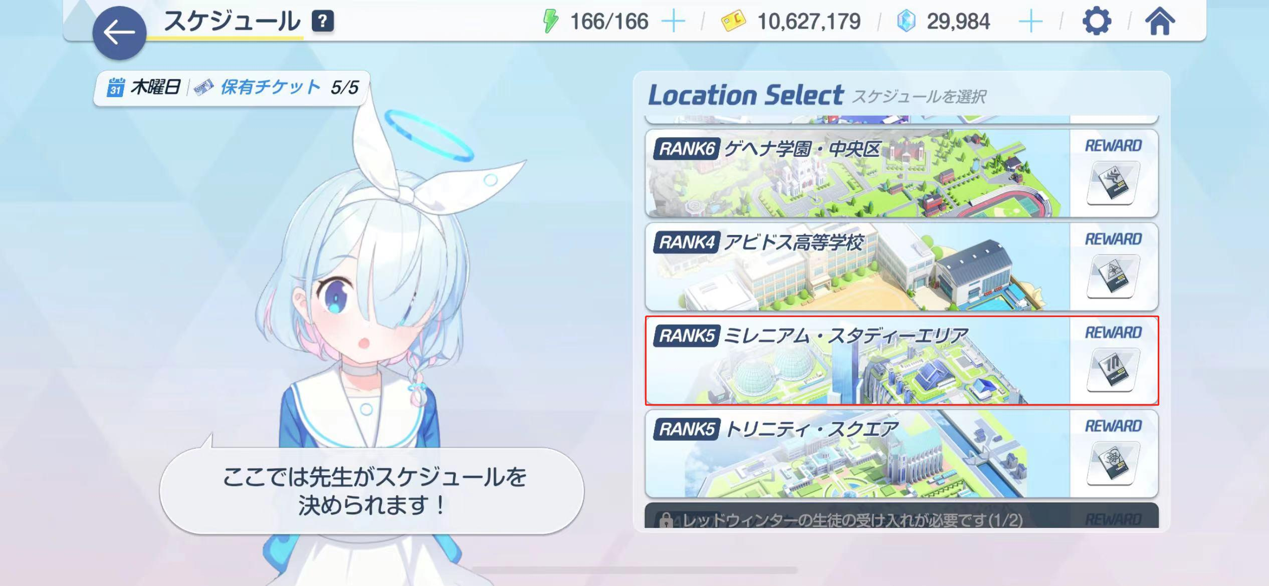 5、日程中点击3次已拥有的千禧学园的学生。