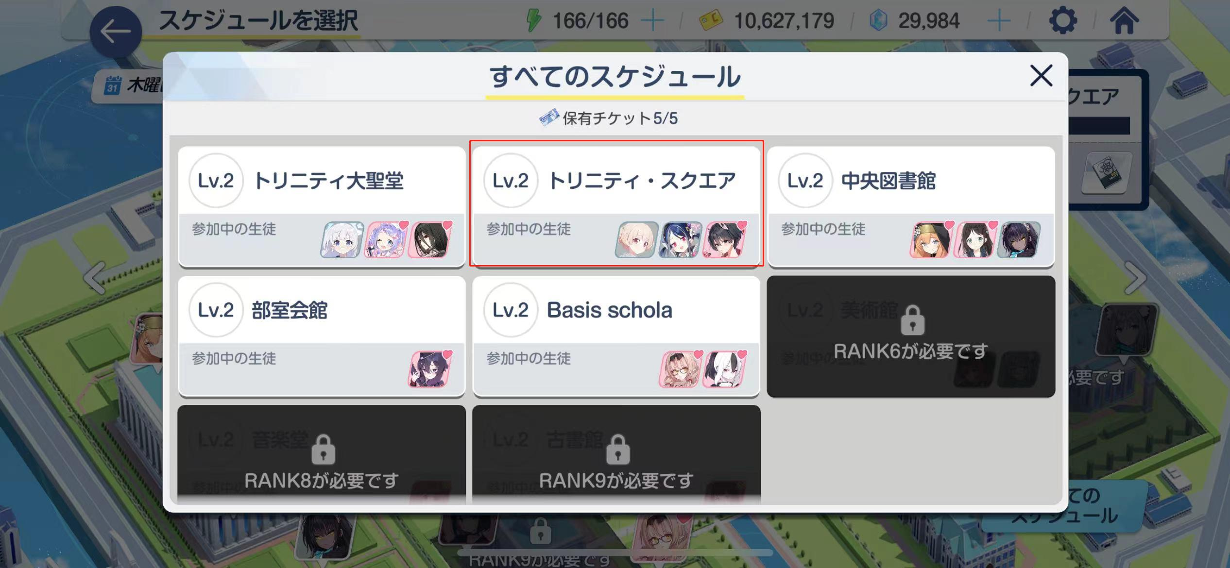 5、在日程里点击4次已持有的圣三一学园学生。