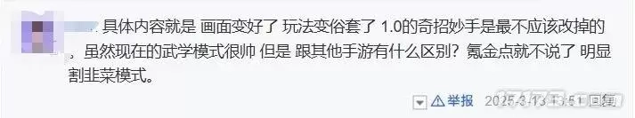 原有的美术风格、特色玩法乃至新手村流程都发生了彻底改变。尽管武学展现力方面有所精进,但却丢掉了原本的特色,使得游戏成了隔壁《逆水寒》与《燕云十六声》的缝合产物。