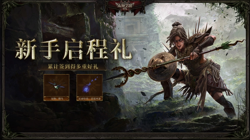 每日登录游戏并在“新手启程礼”活动页面签到,即可领取当日签到奖励,累计签到可获得宠物“蜂鸟”和酷炫足迹特效“雷霆风暴”。