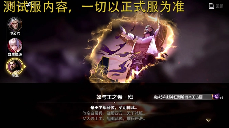 大家好,新版本更新后,挑战模式将迎来全新内容。“封神狂潮”玩法会融入封神榜元素,为玩家带来不一样的战斗体验。与此同时,三位全新BOSS也将同步上线——分别是封神榜中的申公豹、血生魔莲和辛王,他们将成为玩家通关路上的阻碍。这三个BOSS各自有着怎样的作战特点与攻击技巧呢?