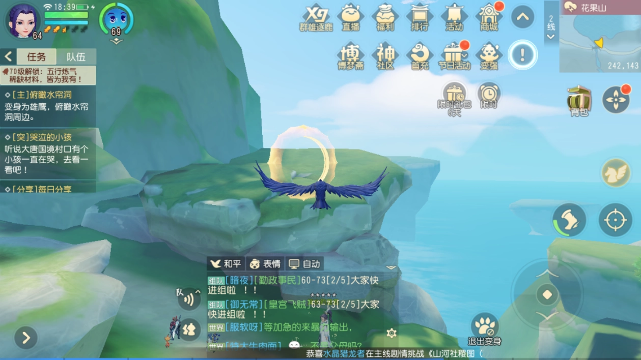 (2)任务要求:秘境里的妖魔都已清理完毕,现在喊一声“筋斗云”就能回水帘洞啦!(在当前聊天频道发送“筋斗云”即可触发)。