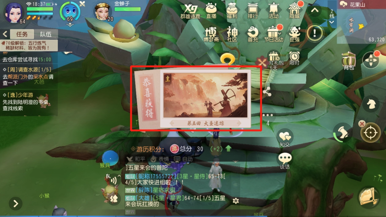 (1)花果山剧情:山河社稷图的任务流程较长,一共有八个小章节。