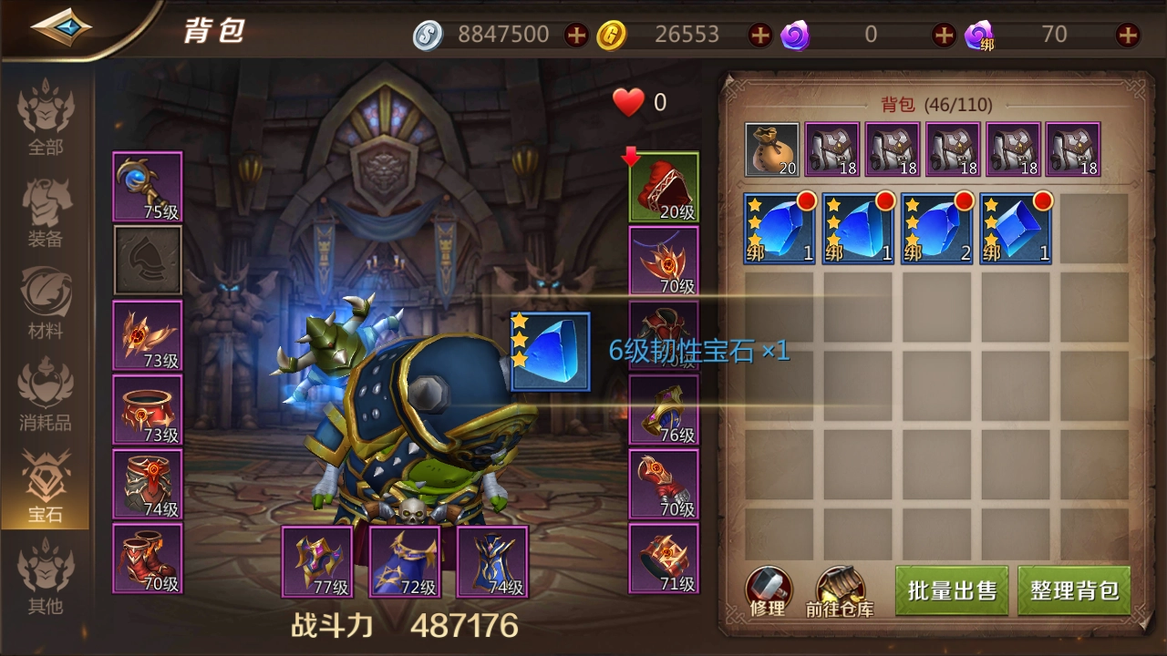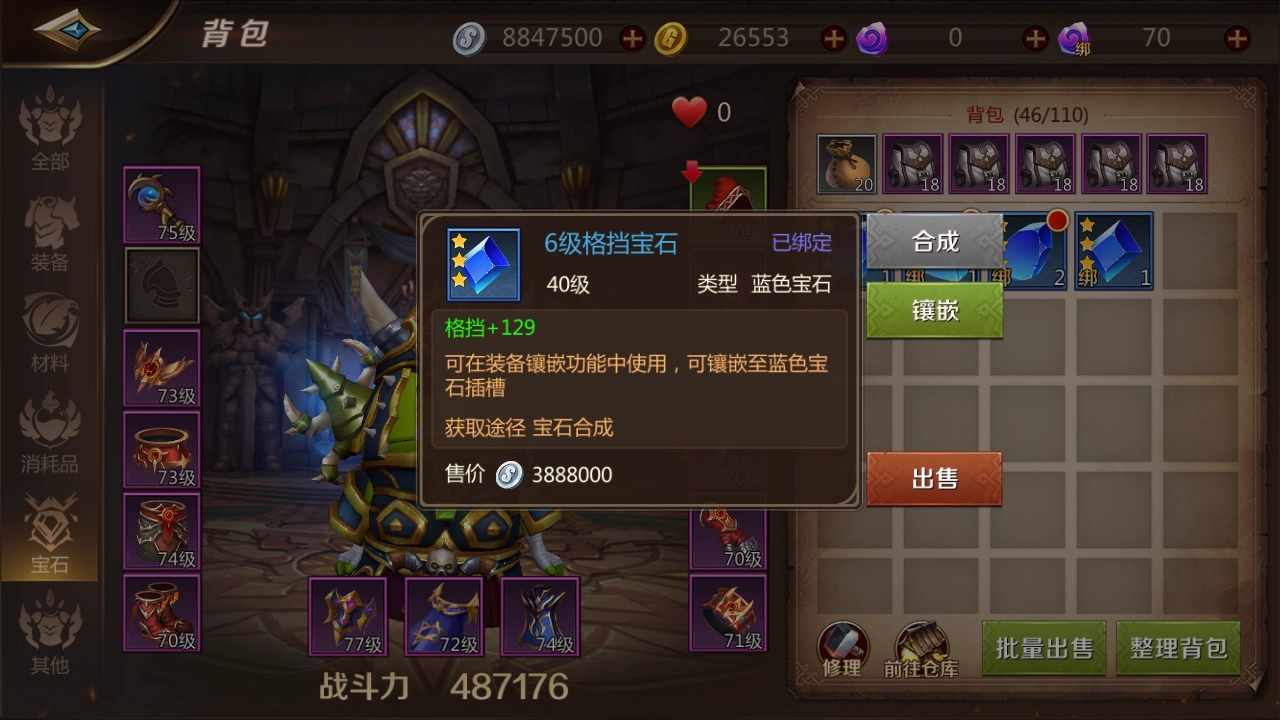 宝石可通过商城或拍卖行获取。需注意的是,我们所需的宝石需具备等级要求,最低为6级,若等级低于此,则无法匹配最强装备的标准。