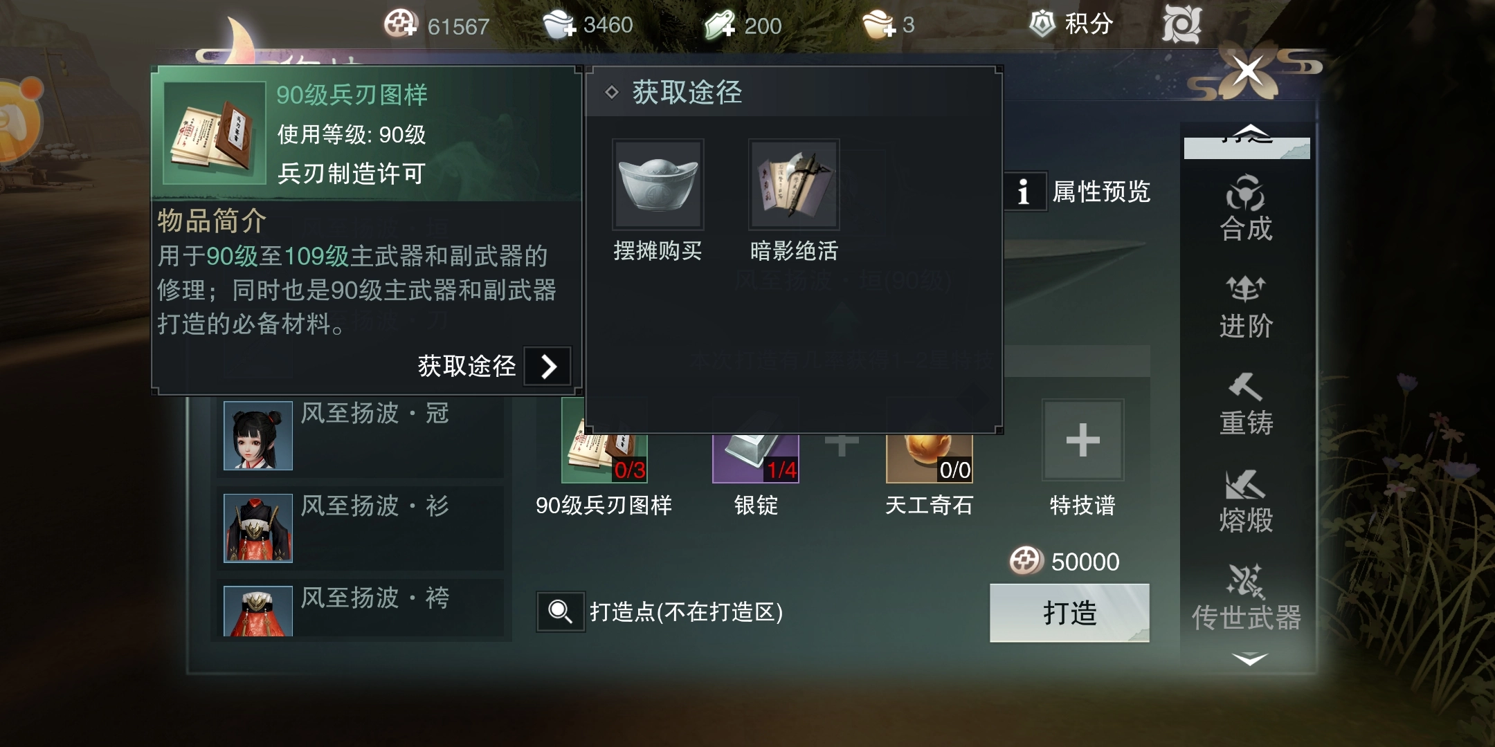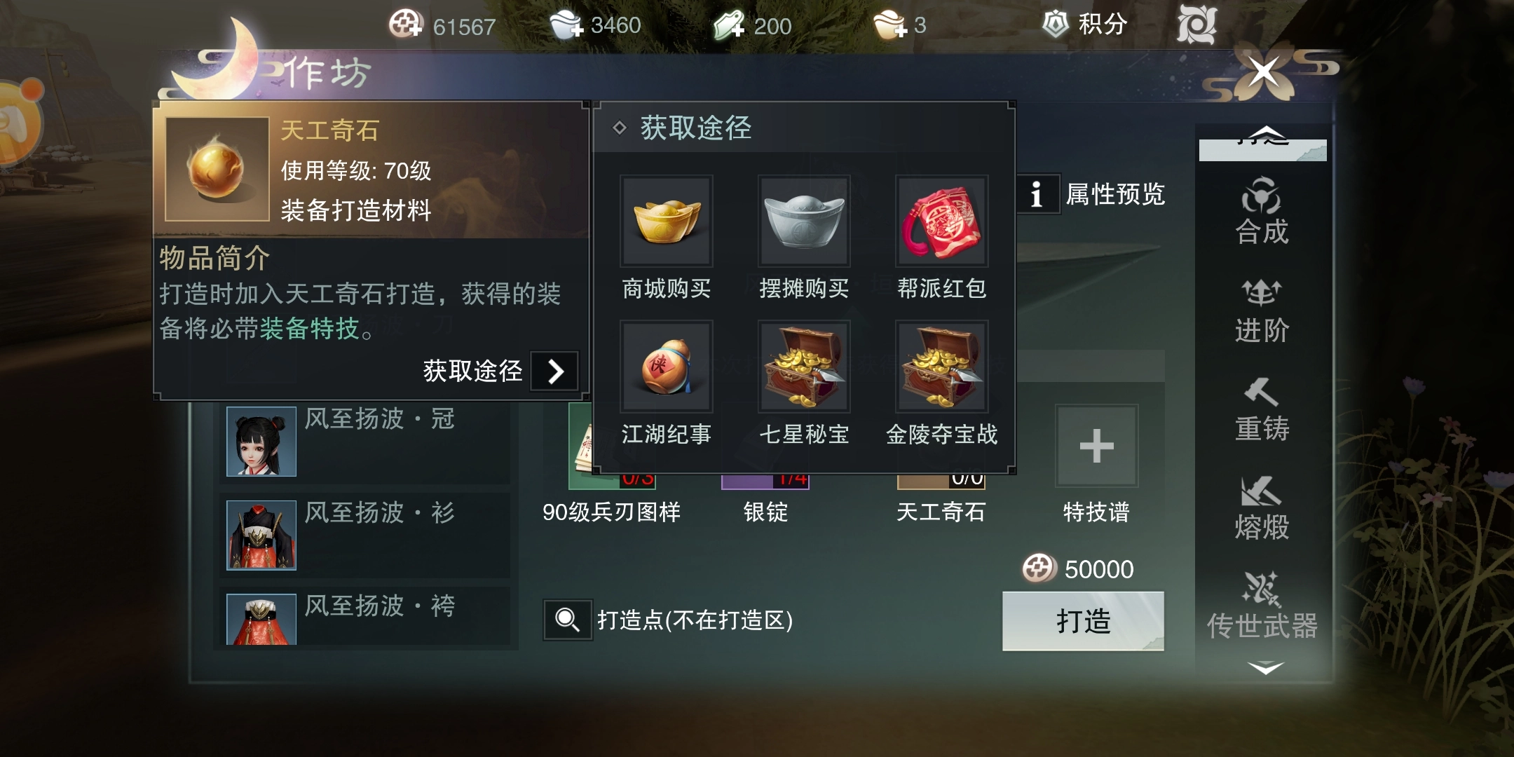 这些材料包含特定等级的打造图纸与若干银锭,它们的获取方式既能通过购买,也能在参与活动、完成任务时获得赠送。不过每次打造都得消耗一定数量的铜币,而且必须找到打造台才行,操作步骤相对繁琐。通过这种方式锻造出的装备,多数都带有特效,即便后续更换装备,也能选择将特效继承过去。