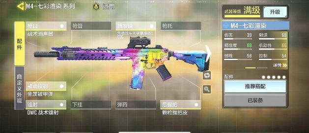 M4顶级零件建议:战略效应器、前卫战略光学倍镜ACOG、被动技能金属材料被甲弹、OWC战略镭射(可换为下挂)、颗粒物枪托皮,这一整套零件最关键是提高M4的射击精准度,说到底在伤害上边比不上AK47,辣么就得在精准度上边做文章。