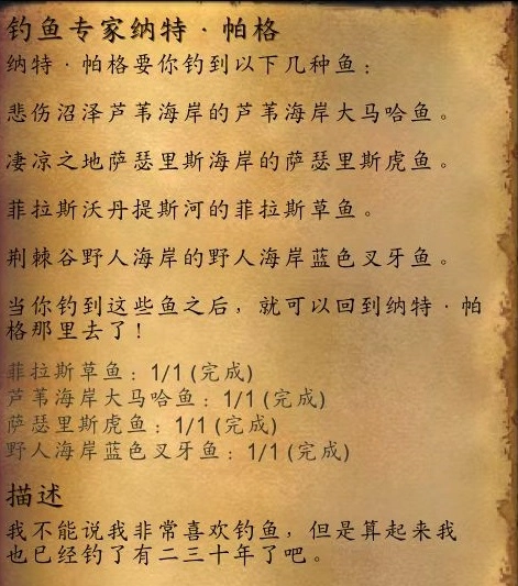 第六个是粗铁鱼竿,在凄凉之地能找到一个贝壳陷阱,打开它就有机会获得,不过存在一定概率,可能需要尝试多次才能拿到。第七个是纳特的好运鱼竿,在尘泥沼泽完成一个钓鱼专家任务后即可获得,它同样具有提升钓鱼点数的效果,而且比前面提到的那几款鱼竿多增加5点。值得注意的是,这个任务是必须完成的,因为它和钓鱼技能的后续提升密切相关。完成该任务需要前往多个地点钓到指定种类的鱼,具体地点包括悲伤沼泽、凄凉之地、菲拉斯的沃丹提斯河以及荆棘谷,这些指定鱼类在海岸区域有几率钓到,所以需要花费较多时间去完成。