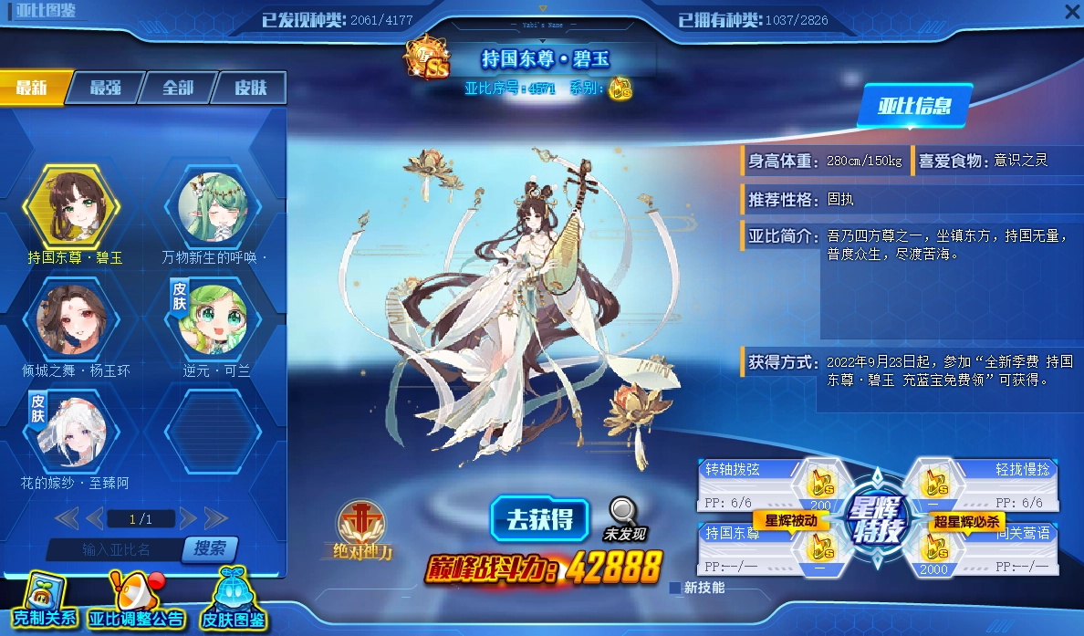另外有一种是全亚比大全,它包含了各个时期的精灵形态。所以后者相对更全面些,而且这里面设有最强排行,点击之后系统会自动按战力从高到低排列,便于玩家查找;右侧还有精灵的详细信息以及一键获取的途径,实用性很强,同时大家也能查询克制关系,以此来应对对应的boss。