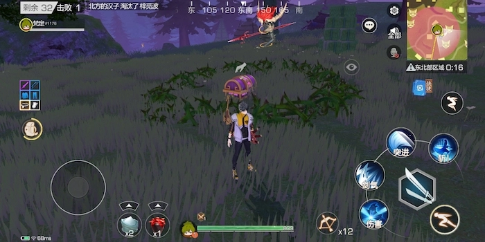 紫色宝箱是所有宝箱中数量最少的一类,它不仅能开出长弓碎片,还能爆出蓝色品质及以上的装备或道具。这类宝箱通常出现在荆棘中央或者沼泽地带,位置多集中在地图的东部与南部,北部山脉区域则分布得比较少。需要注意的是,靠近荆棘时一定要通过跳跃的方式,不然会被扣除生命值,沼泽也是一样的情况。