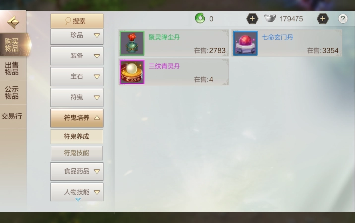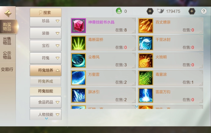 直接进入交易市场,无论是银子交易市场还是金子交易市场,都能看到符鬼培养相关的技能书在出售,选好后直接付款就能购买带走。