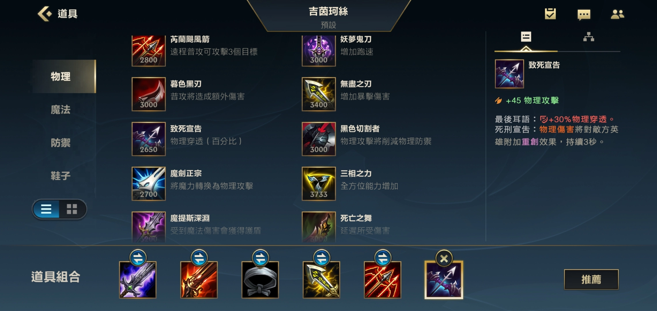 要是对面阵容里坦克英雄比较多,咱们就出穿甲弓来保证输出伤害,不然打在他们身上伤害会显得很疲软;要是对面没什么肉坦英雄,那咱们就可以选择出死亡之舞,这样能提升吸血效果和抗伤害的能力。