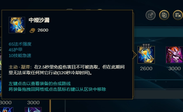接下来我们要出的装备是【灭世者的死亡之帽】,要是玩家觉得自身的生存能力已经足够,那就不需要再出【中娅沙漏】了。