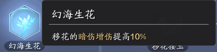 移花(输出):移花输出天赋和唐门相同全都是增添暗伤增伤10%,看得见输出职业加成基础都差不多。