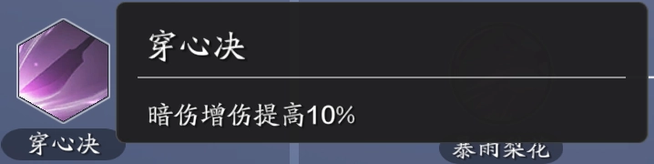 唐门的两套天赋都包含10%的暗伤增伤加成,不过由于穿心翎和爆天星的会意伤害效果十分突出,不少唐门玩家会在属性选择上感到困惑。这里依然推荐优先选择暗伤属性,具体原因可以参考后文的解析内容。