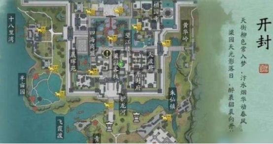 虽然按任务提示说是开封最大的酒楼,但它其实位于天波府正门正对面的左侧,靠近小孩所在的那边。