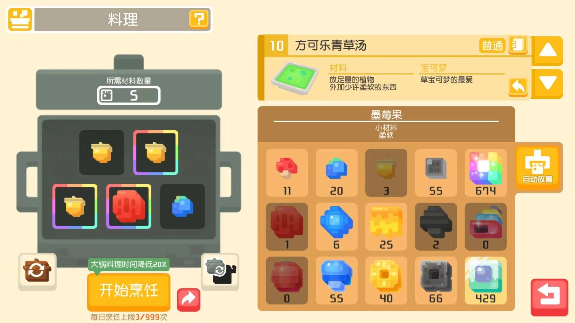 在烹饪玩法里,先选用系统赠送的锅具,接着从已有的食材中挑选并投入锅内;等锅子装满食材后就能启动烹饪流程,这个过程需要花费一些时间。烹饪结束后打开料理,会吸引来各式各样的神兽;这些神兽出现后会成为角色的伙伴,后续或许能一起参与战斗,也可能被用作其他神兽相关玩法的消耗素材。