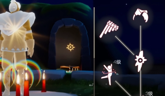 旅人们要先点亮排箫先祖,把它身上的灰烬都烧尽,之后就会接到排箫先祖的运光任务。任务开始后,旅人们跟着系统显示的蓝色光圈提示,把缺失的能量收集完整,再回到排箫先祖那儿,就能向它学习初级旋转跳跃动作,还能把排箫先祖送回天上。