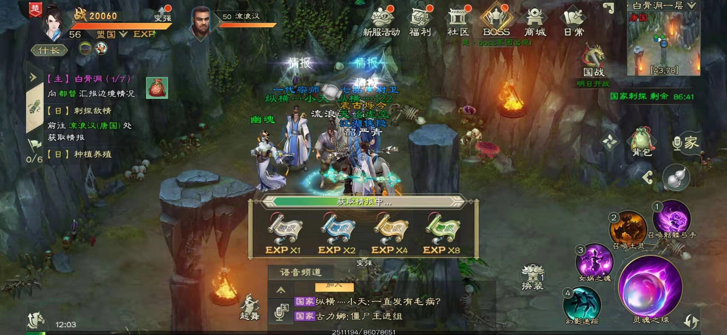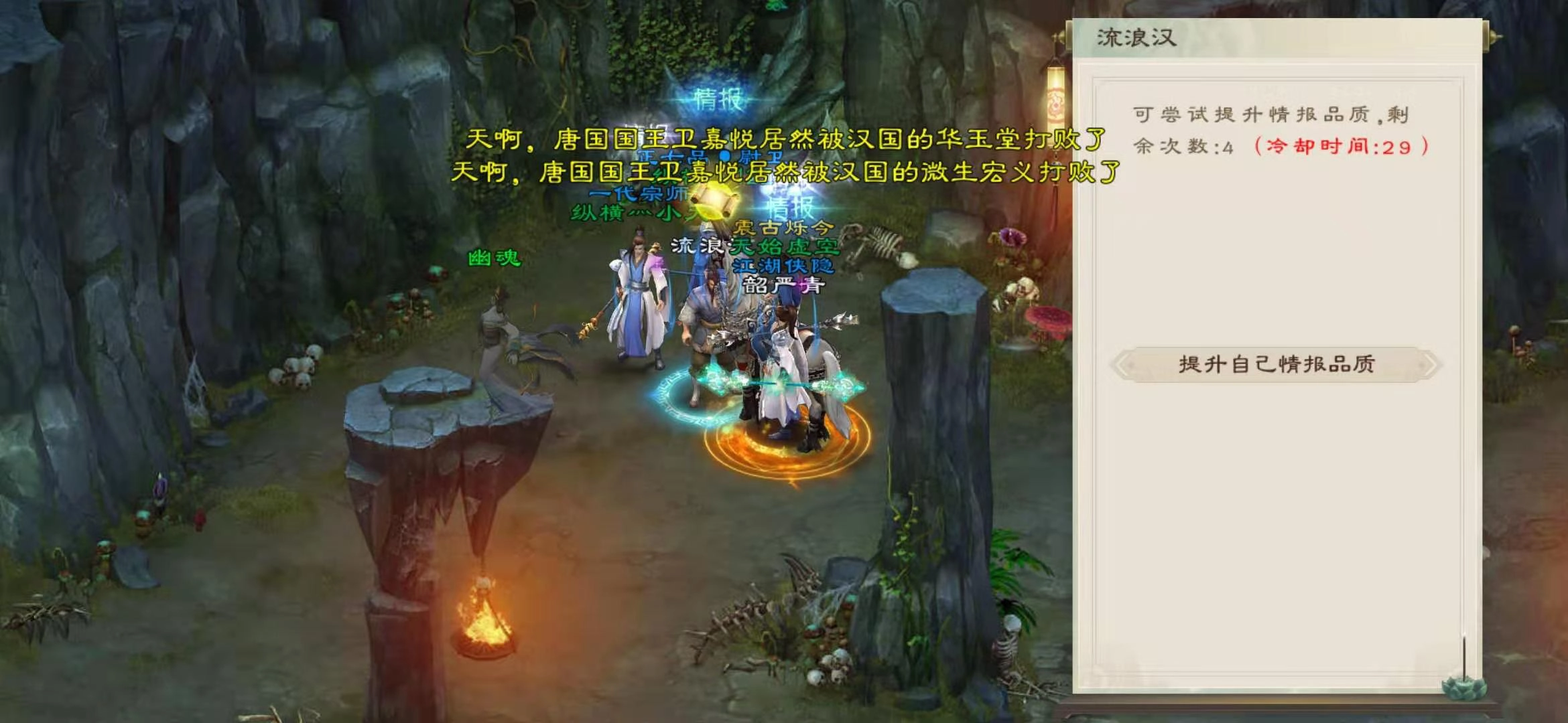 选好要刺探的国家后,就能通过本国的边境传送门传送到目标国的边境;接着从敌国边境前往西郊城,再抵达敌方王城附近的白骨洞一层,找到洞内的流浪者即可获取情报。