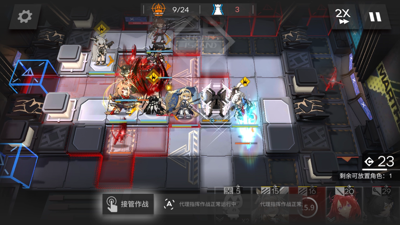 也别忘了安排其他干员去阻挡凝血之刃,保证BOSS每一轮最多只能吸收一个凝血之刃就行。我当时是在地图中央放了银灰,开启真银斩一次能打到四把凝血之刃。成功挡住凝血之刃后,二阶段的BOSS就失去了回血能力,而且它的法抗在二阶段会大幅降低,用法蒸队就能直接把它秒掉。