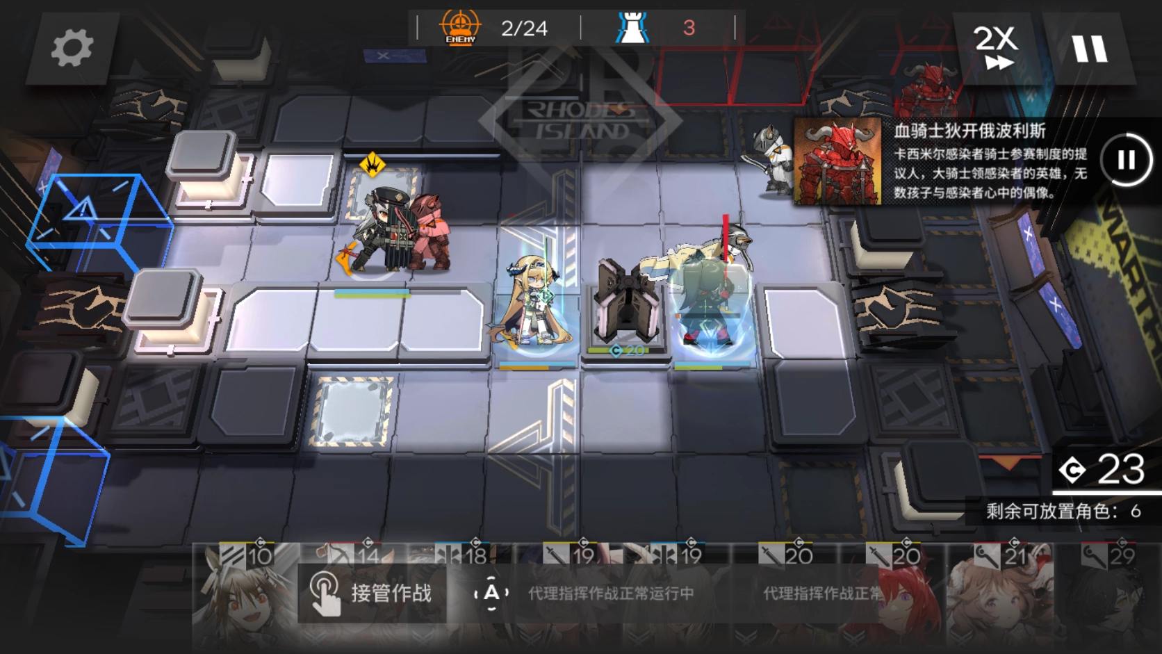 本次长夜临光活动的最终BOSS是血骑士狄卡俄波利斯,在明日方舟已推出的所有活动BOSS里,它算是难度相对较低的一个——只要摸透它的机制,就能轻松应对。不过有一点需要注意:血骑士比其他不少BOSS登场时间都要早,这可能导致前期费用紧张,建议大家多携带几名先锋干员来加快回费,以便更早部署其他干员。