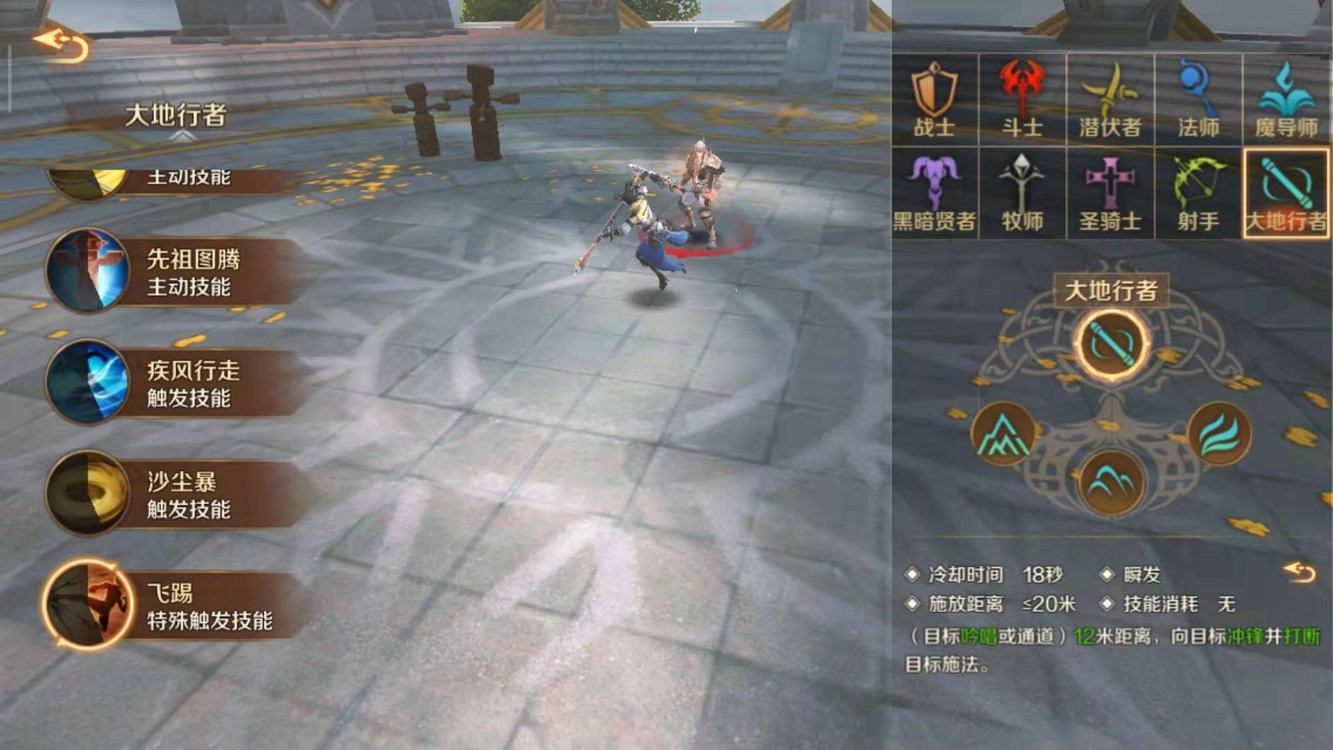 最后一个具备打断技能的职业是大地行者。大地行者的【飞踢】技能可以立即位移至敌方单位身旁,对其发起冲锋,并且能够打断敌方正在施放的技能。鉴于大地行者本身属于近战攻击职业,该技能在追击敌人时的实用性尤为突出。