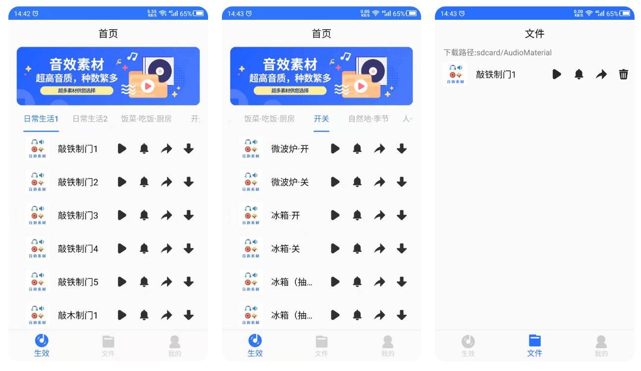 要是你正好有制作大量音频文件的需求,这款app能帮你轻松获取各类音效素材。目前软件已为用户做好了相关分类,大家只需根据实际使用需求去查找就行。而且,软件还开放了试听功能,方便大家在正式使用前,先听听音效是否符合自己的预期。整个app的操作方式也很简单,主要的分类页面都直接集中在首页。