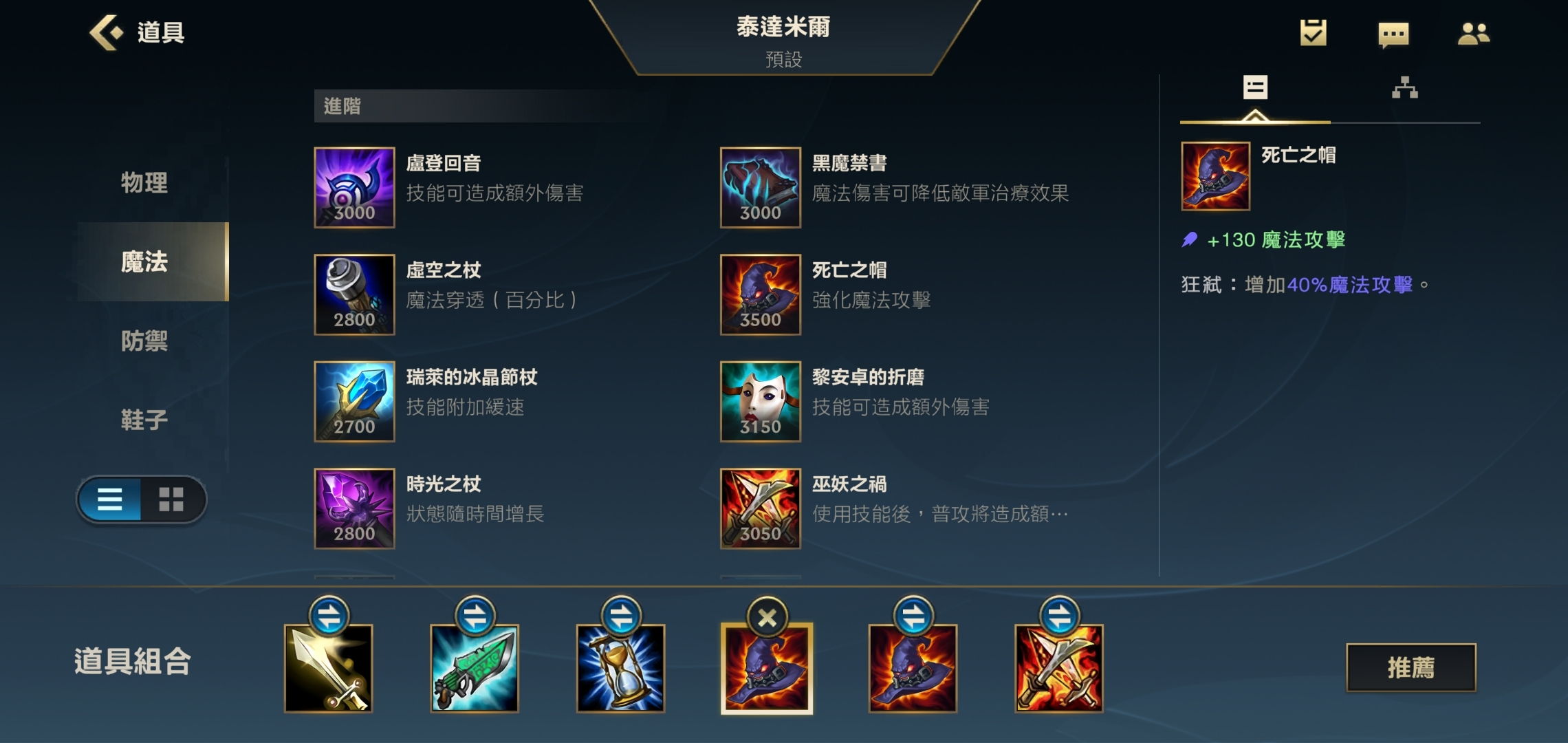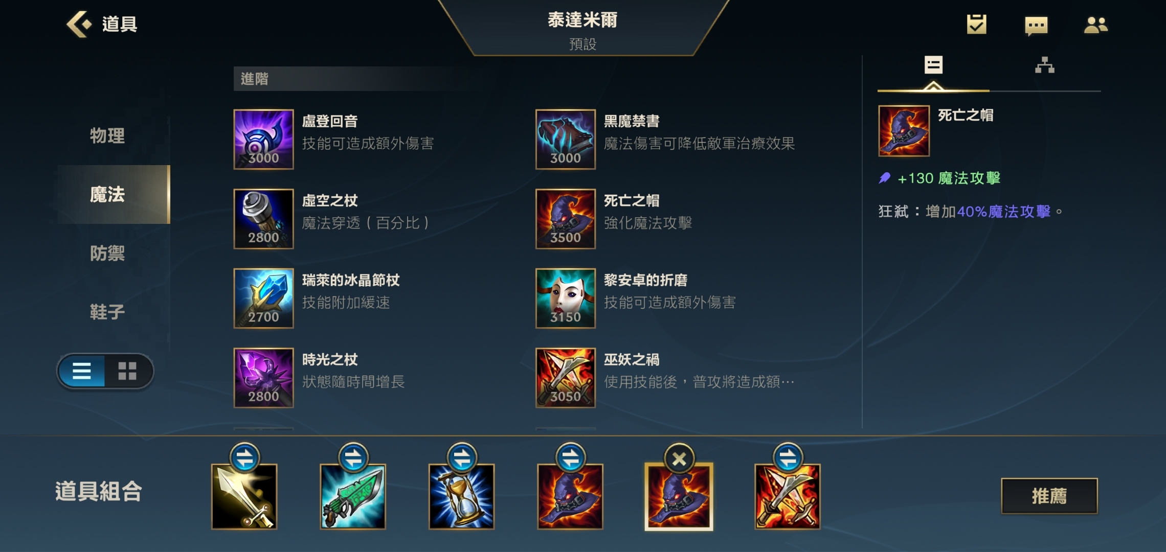 第四件装备选择大帽,将法强数值堆到顶峰,这件装备成型后,我们的Q技能在满怒状态下的回血效果足以让生命值回满。