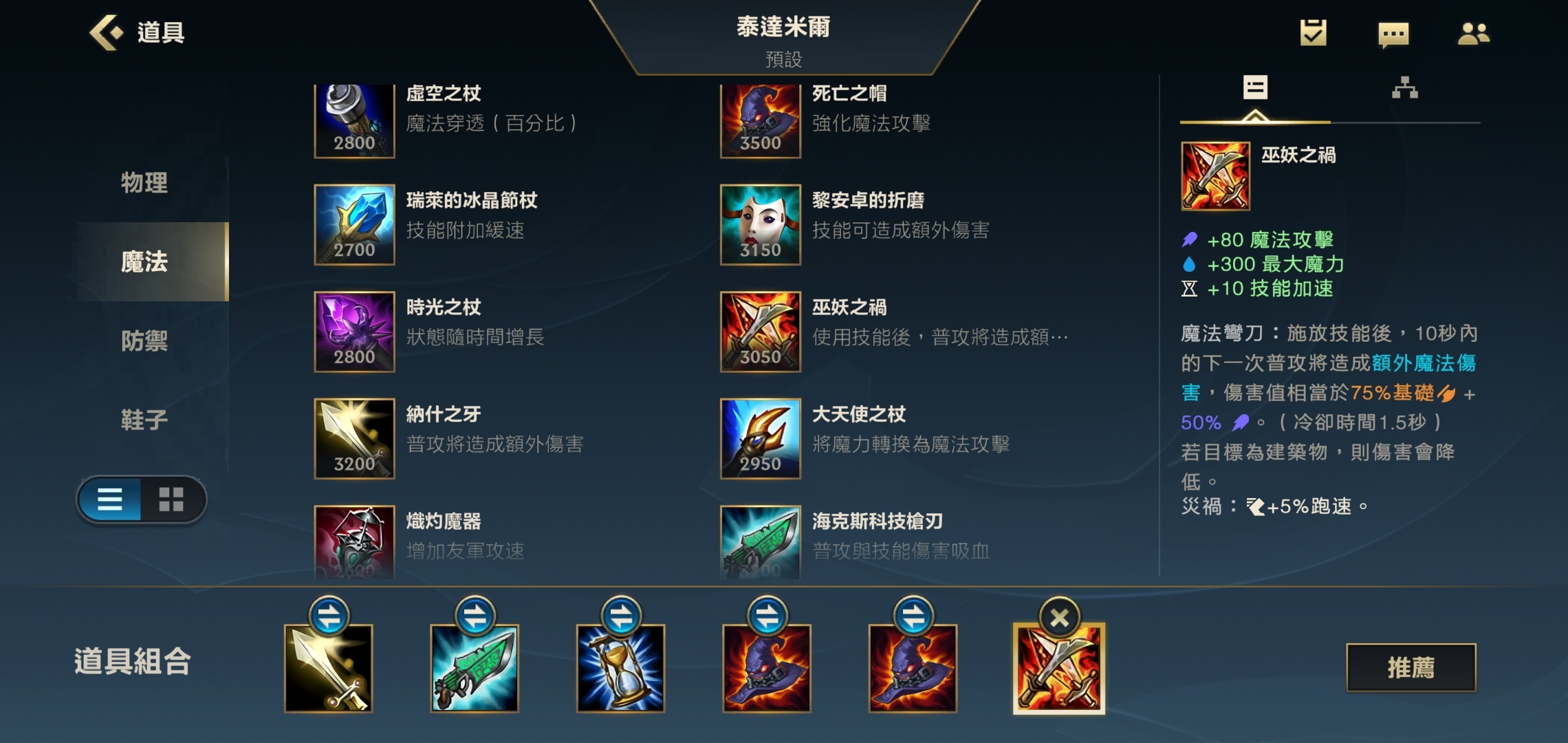 第五件装备依旧可以选择大帽,毕竟法强才是蛮王的核心属性——法术强度上去了,不仅回复量会跟着提升,E技能的伤害也会变得相当可观。