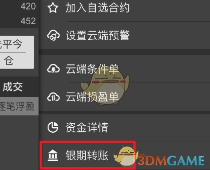 3、于弹出的主菜单列表里,挑选“银期转账”选项。