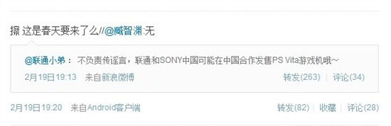 继神游确认将发行大陆行货版3DS的消息后,PSV行货版的相关动态也开始逐渐显露。近日有非官方渠道消息称,联通计划与索尼携手,在中国市场推出新一代次世代掌机PSVita的行货版本。