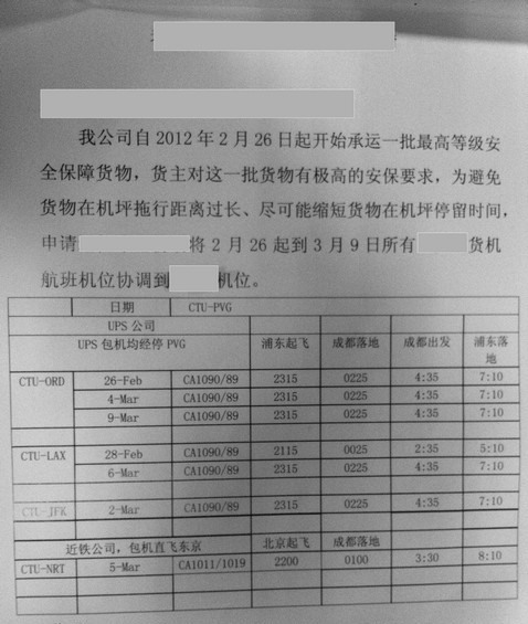 随着苹果下一场关键产品发布会的日益临近,相关的各类消息接连不断地传出。近日,有新浪微博用户晒出了几张运单照片,从内容来看,苹果公司似乎正通过成都运输一批重要的货物。而这一情况,恰好和此前传闻中3月7日将召开iPad3发布会的消息相吻合。