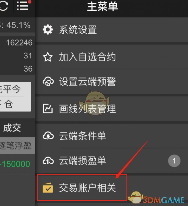 4、从弹出的选项里,挑选“交易账户相关”。