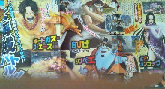 杂志图也公布了本作的Boss阵容,涵盖青雉、黄猿、赤犬、巴索洛米·熊、麦哲伦、战桃丸、鹰眼、CP9等角色;而同盟角色方面,则有甚平、女帝等人在列。