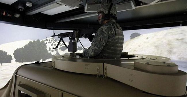 美军把虚拟现实技术应用于军事领域的各个方面——无论是操控喷气式战斗机,还是扑救船上火灾。图中展示的是机枪手训练场景。