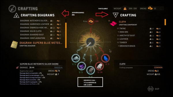 护甲类铸造的情况类似,不过有一些小区别,皮质和布质材料需要多留意,但不能全部取用。搭配其他物品的话,可以在铸造师那里把原材料加工成更高级别的材料。