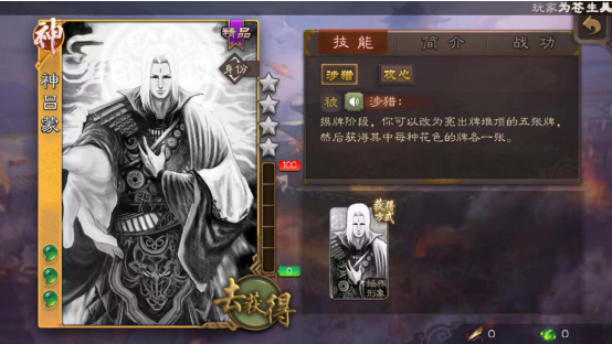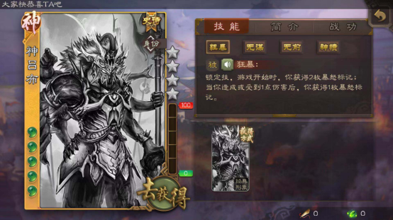 5.神吕布:优势在于生存能力出色,很难被瞬间击败,不过其摸牌能力有所欠缺,整体定位偏向于承担伤害的肉盾型角色。