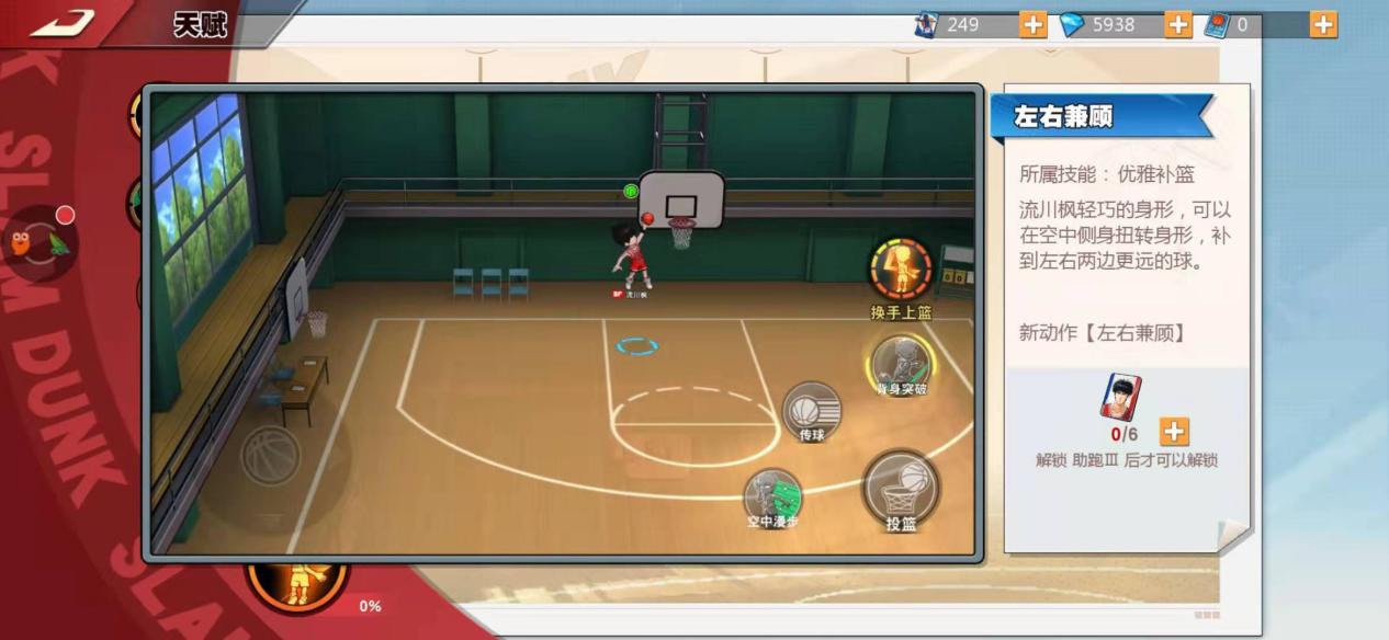 技能优雅补篮,这项技能十分考验时机把控能力,只要节奏拿捏得当,就能把队友投失的球补入篮筐,其使用难度比篮板球更高,得勤加练习才行。技能灵巧抢断,流川枫会突然出手,将对手手中的球抢断,并且顺势把球往对方一侧拍出,该技能在攻防两端都颇为实用,是一对一较量时最让人忌惮的技能。