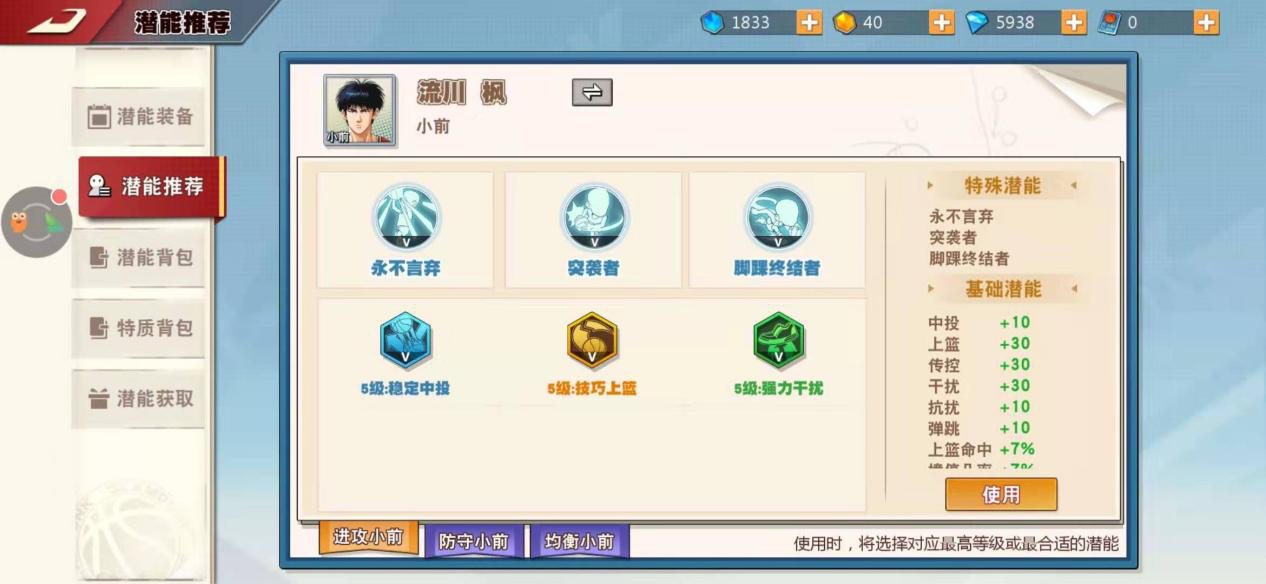流川枫凭借多样的得分技巧成为了极具威胁的进攻型中锋,建议大家优先将急停投篮与空中漫步这两个技能升满,如此一来在进攻端就能占据绝对优势,我用这名角色时几乎每局都能拿到得分王。