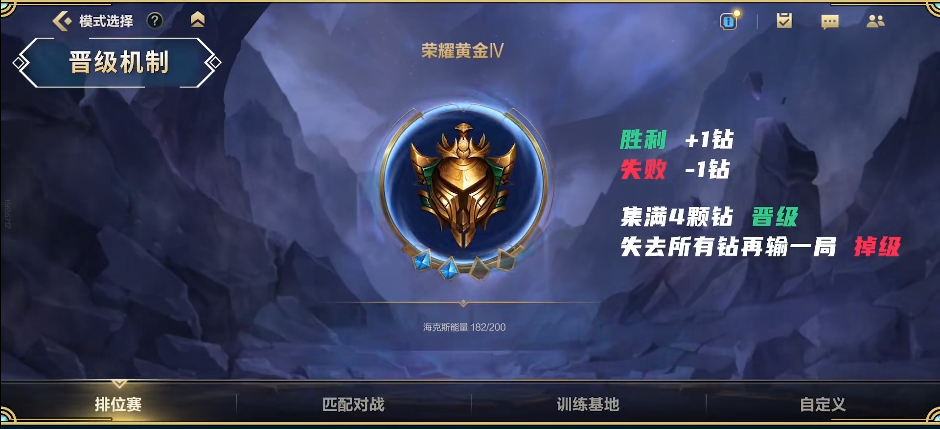 若玩家在上一赛季段位为钻石四,则下一赛季则会下降至翡翠三;