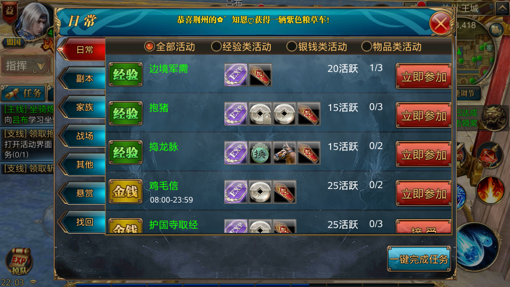 战斗的流程是这样的:点击参与后,我们会被传送到一个特定地图,这个地图里只有对应的三国人物BOSS。只要击败这个BOSS,挑战就算完成了,所以这个玩法主要考验的是我们的战斗力。