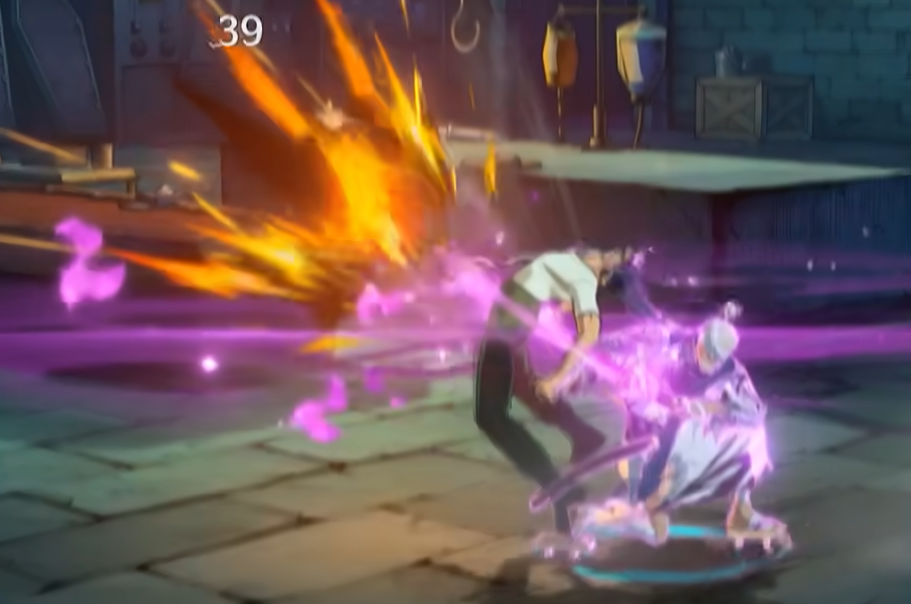 他的普通攻击共有四段:第一段是上挑斩,第二段会向前踏步后接二连斩,第三段为后撤斩,第四段是突刺贯穿敌人——这个贯穿效果会被判定为抓取,一旦成功命中,就会自动释放追加斩击。他的一技能是拔刀,斩击落在敌人身前,敌人会被震慑在原地无法移动,不过此时也不会受到伤害。